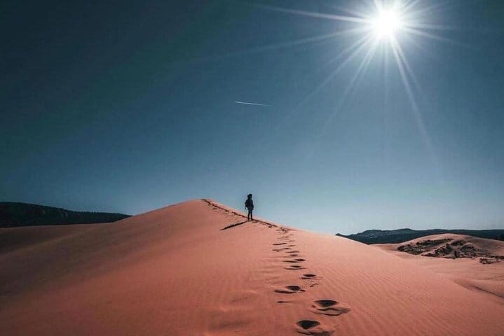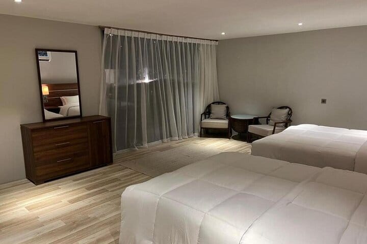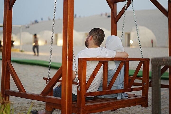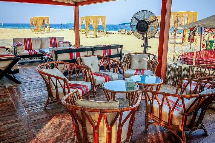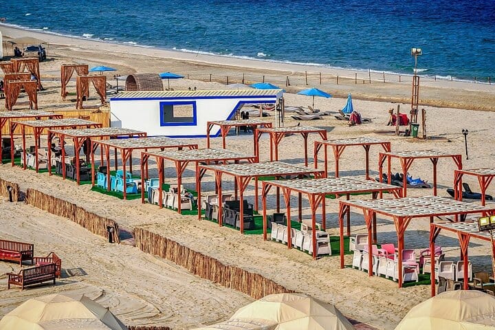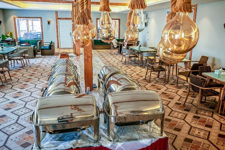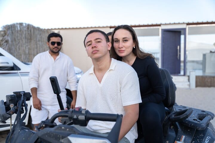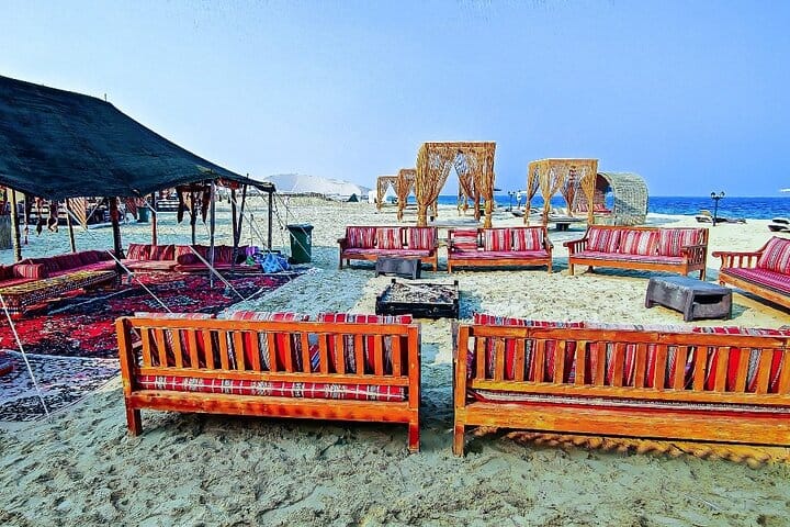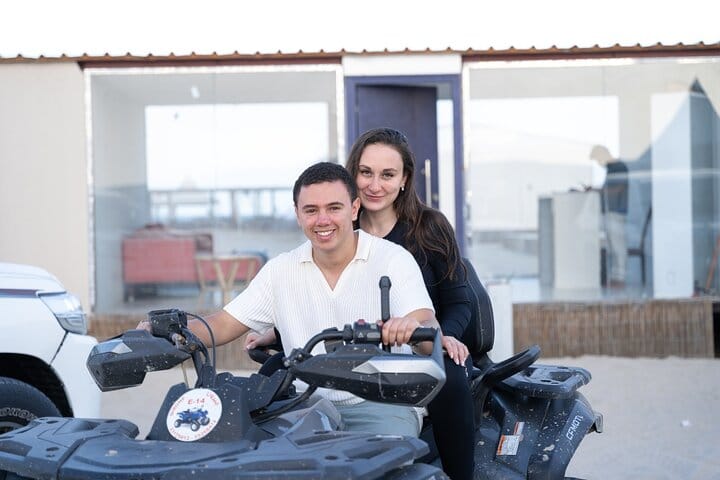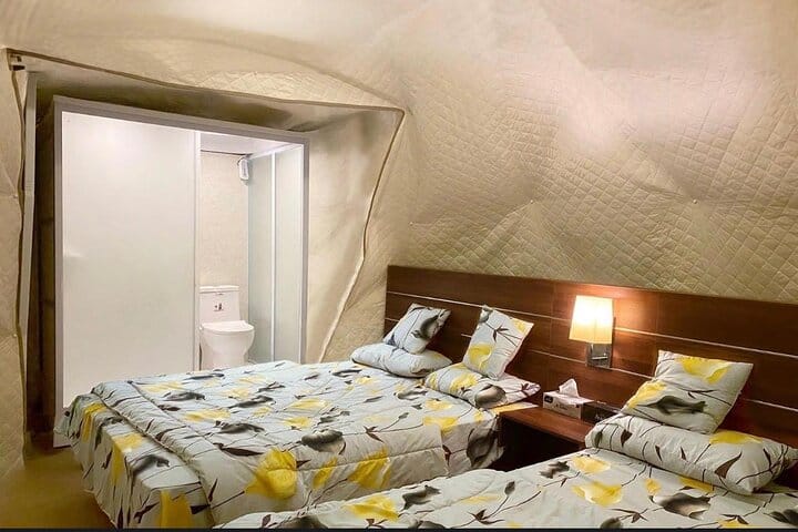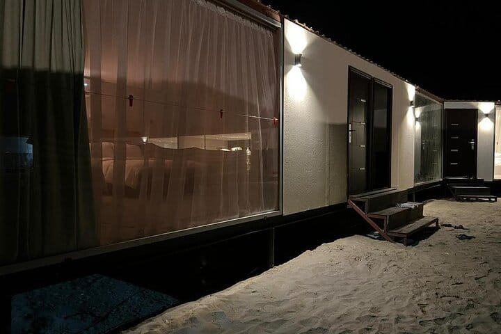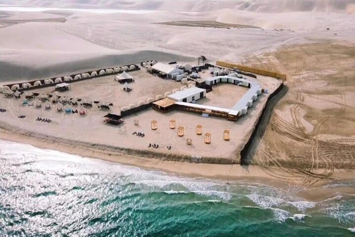 A luxurious overnight desert safari awaits at our prestige desert beach camp, where thrill and relaxation coexist. Start with hotel pickup and an exhilarating ride into the southern desert for dune bashing, sandboarding & camel rides. Upon arrival, indulge in our private beach amenities, engage in beach games, or unwind in the comfortable lounge areas while enjoying music via Bluetooth. Guests savor unlimited soft drinks & a sumptuous BBQ buffet in our dining hall, complemented by a bonfire under the stars (depends on weather). Experience ultimate comfort in private dome tents or VIP cabins and wake up to a breathtaking desert sunrise and breakfast before your return to the hotel.